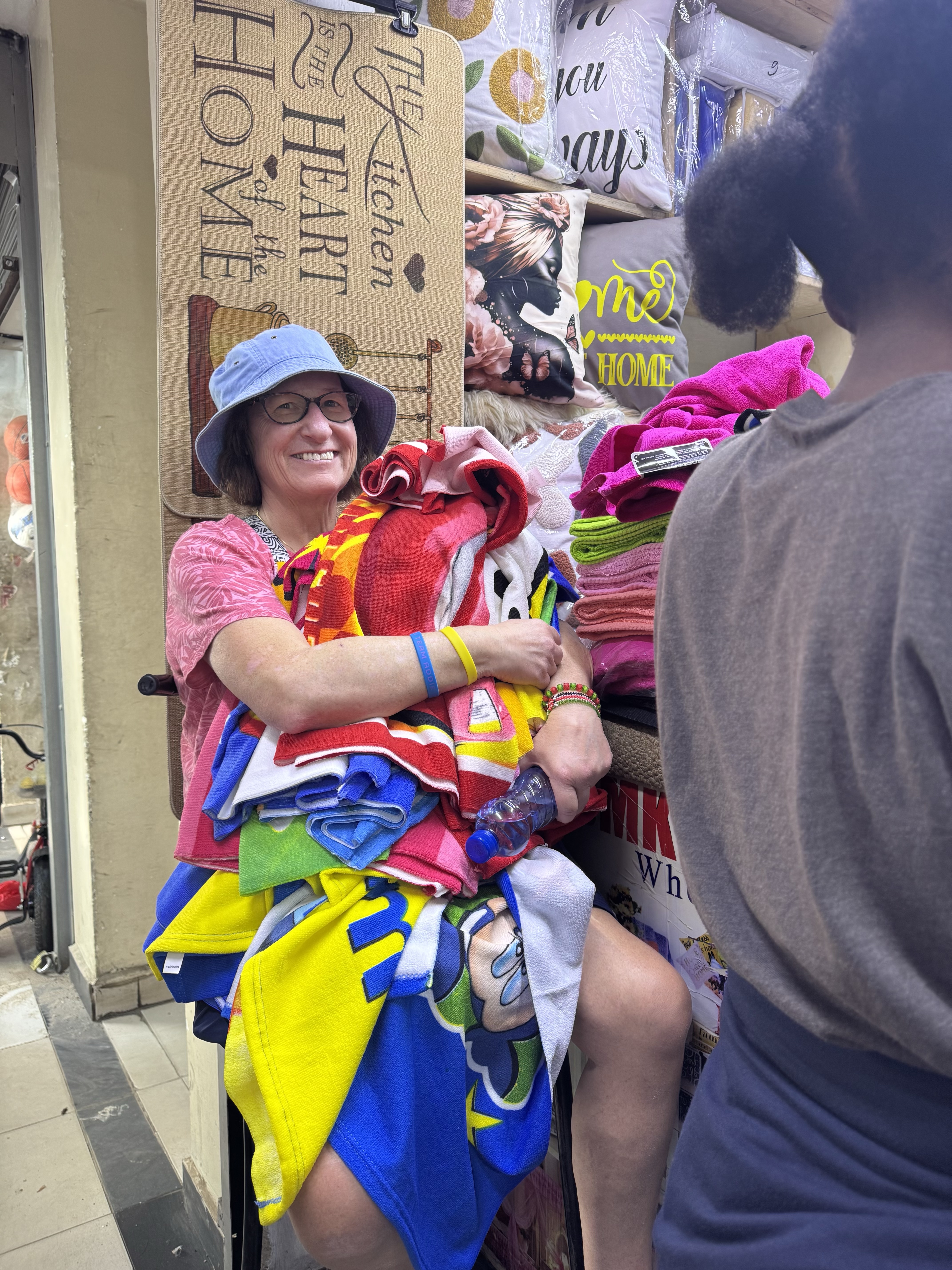 After a much-needed rest and acclimation, we set out on a shopping adventure with Leann and Belinda. With the funds that were graciously donated, we were able to buy new sheets, towels, and fresh bedding for the children’s cribs. Of course, this took negotiation and keen bargaining, and we left with a items to make the children’s home feel a little more special. Just look at Nicolas’s face as he received his brand-new Spiderman towel and sheets -priceless!