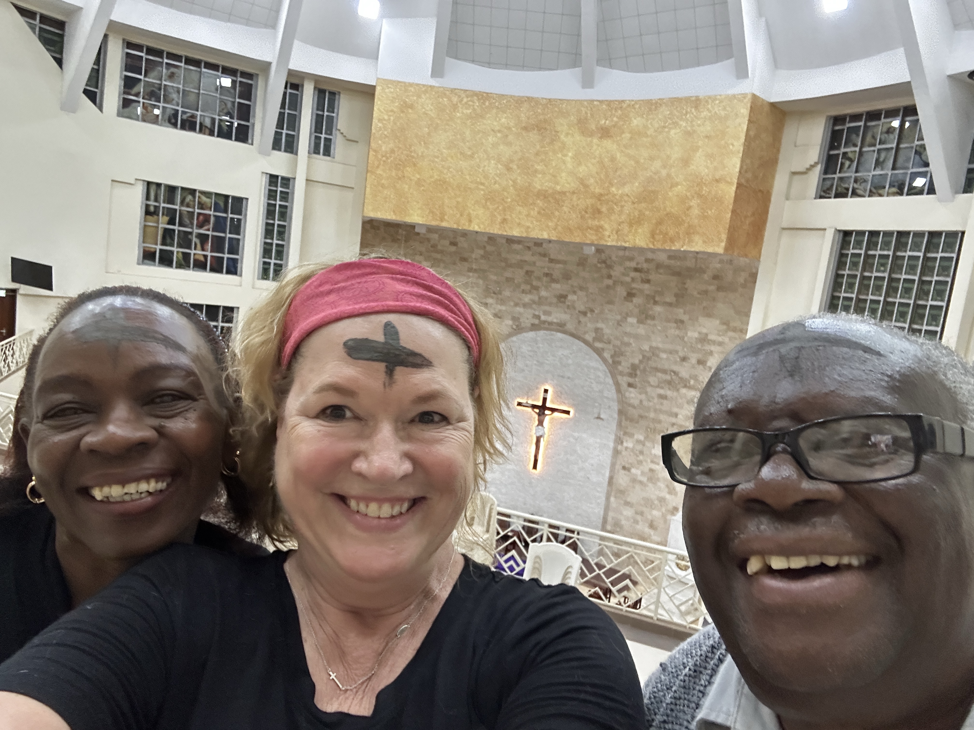 This year we stayed with Anne and Steve at their home while in Nairobi for the first part of the trip. They invited me to their church for Ash Wednesday. There were more than a few jokes about how my ashes were seen as the only white person at the service of over 100’s of Kenyans. It was a beautiful service. The mass was in English and the music in Kiswahili. I tried my best to sing along with the words projected on the wall and decided to just clap and dance instead.