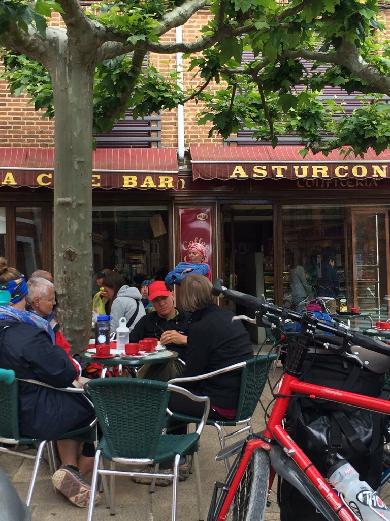 After our typical breakfast of bread, fruit and coffee we discussed as a group that today maybe the day we take a rest and only go as far as Sahagun. We were all pretty sore and after all it was the Sabbath. In Sahagun, we stopped for more cafe and a pastry.