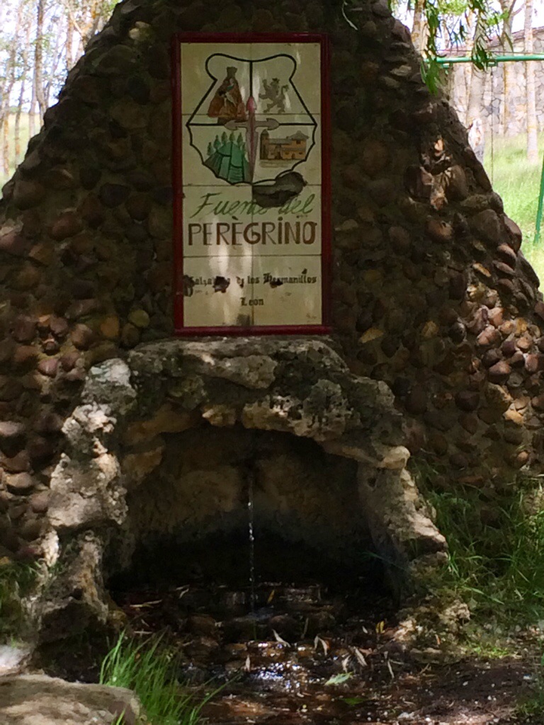and to the fuente del peligrino in the middle of a five mile long trail through the countryside. Here is where you are to drink water from your scallop shell and taste the sacredness of what you are doing.