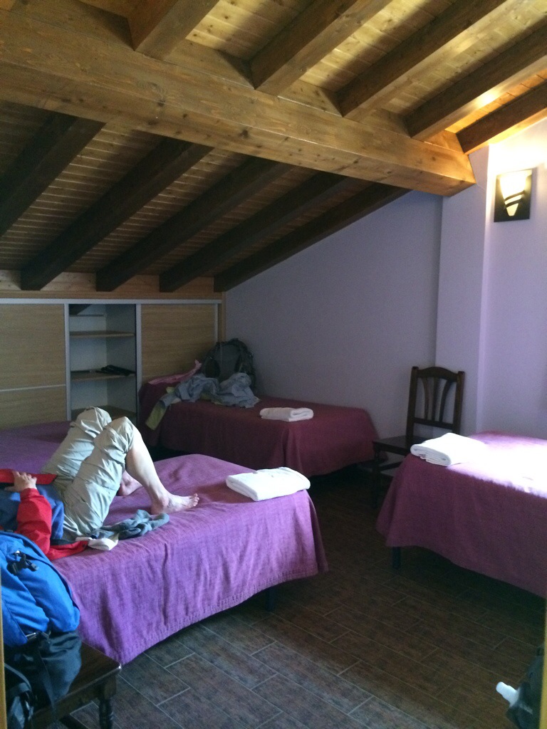 We were thrilled when we got to our Albergue, Via Trajana for a few reasons: it was right off the trail, hot showers, beds with sheets, and only 3 of us in a room.
