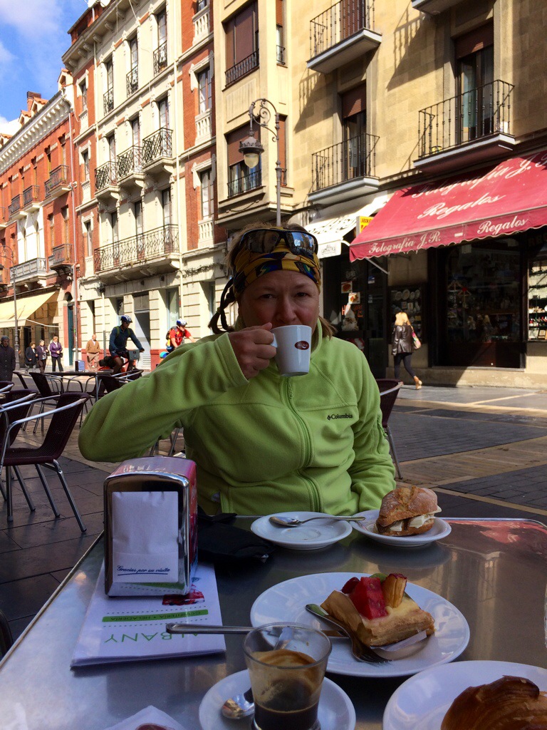 Today I put down my pilgrim backpack and picked up my tourist camera and spent the whole day exploring the city of Leon. It began at 10am with breakfast at an outdoor cafe and ended with mass at 6pm said by the Bishop of Leon. It was a glorious day and I will let the pictures speak for themselves. Mom, the St. Francis statue is right next to our Albergue.