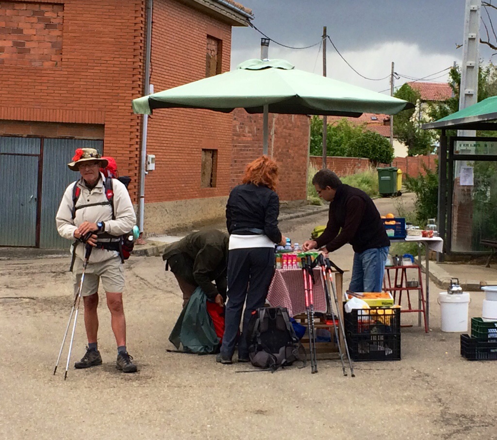 We came across a man selling fruit,coffee, nuts and chocolate to pilgrims for a donation.