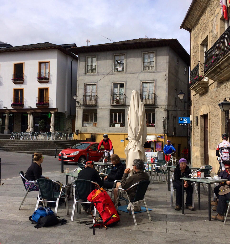 We stopped in Fonfria, a typical Galician village. When I tell you these are farming villages, take a look at what goes by behind us sitting outside having lunch at a restaurant.