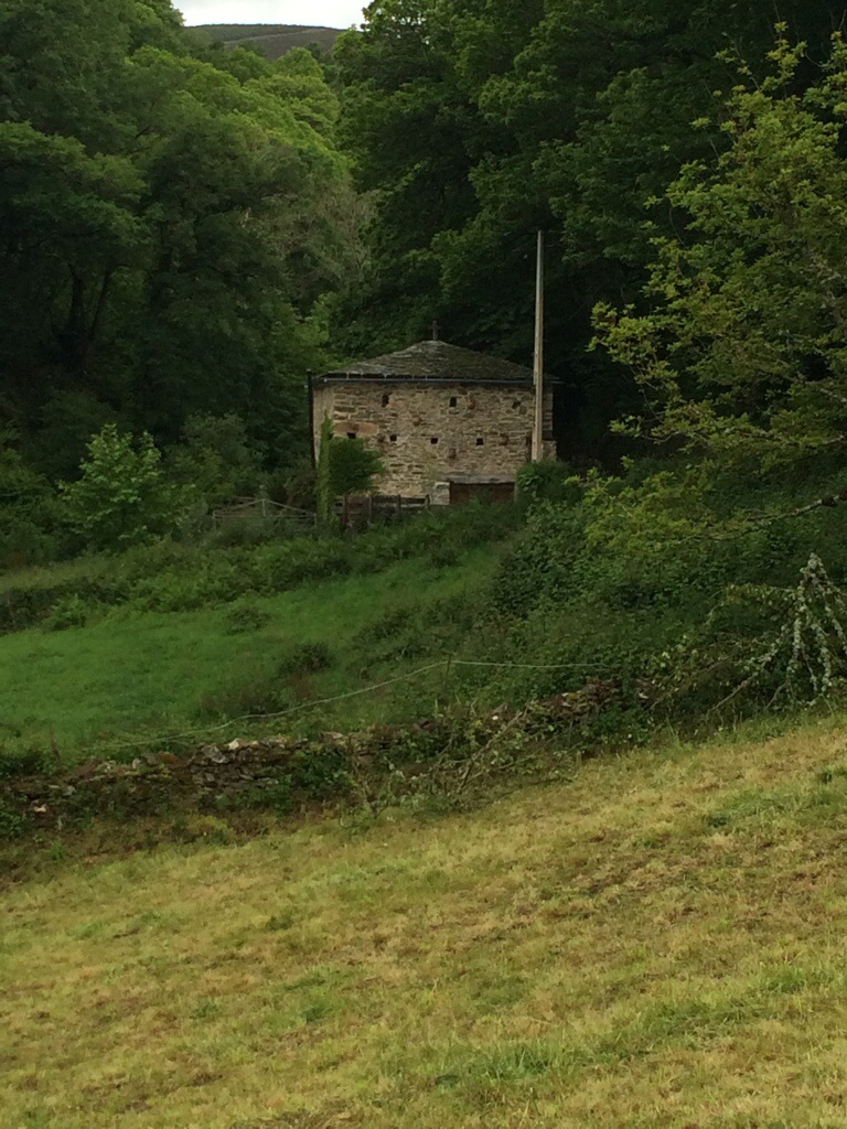 Shortly after this it started to rain and continued until we got to Triacastela. Nearby are the quarries that provided the limestone used I the building of Santiago. Medieval pilgrims would carry as much as they were able to the kilns to help. We are hoping the packs we are carrying will remind us of their sacrifice.