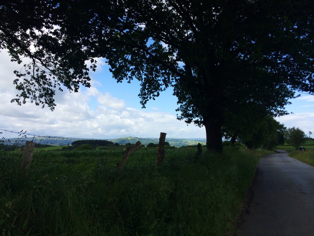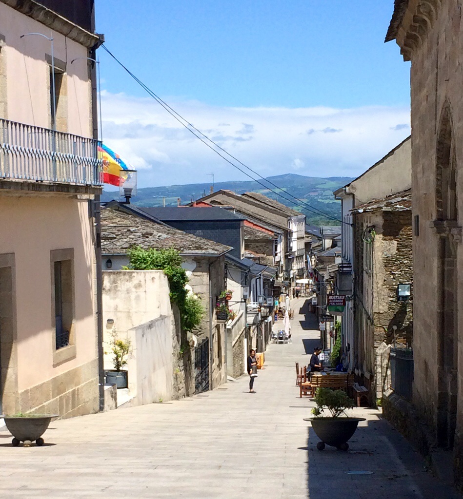 Meaning, it’s up to you to moooove. Sorry, if you were here after a long day of climbing you would think that was hilarious. Today (June 5) took us through small farming villages and up into the mountains. So different from the plains when we started. From long trails through wheat to quiet paths through the woods, it’s as if we started a whole new Camino.