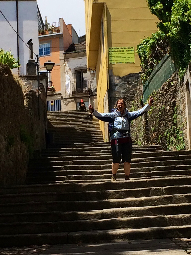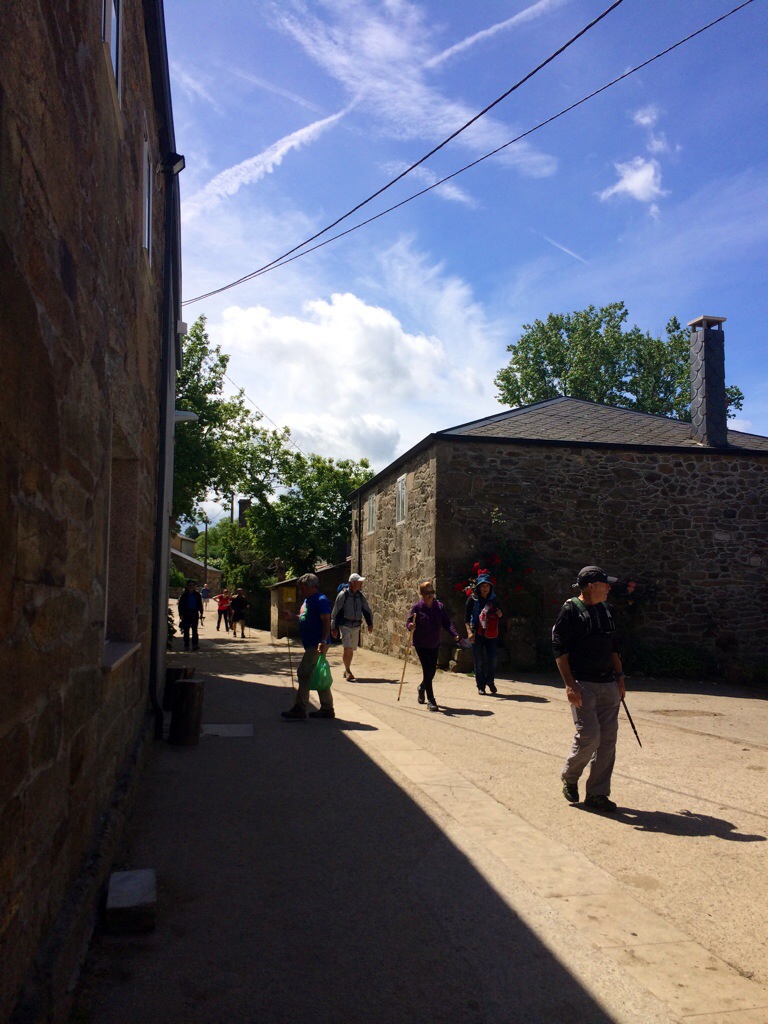 The 14 mile walk today from Ribadiso to O Pedrouzo seemed longer than usual. Maybe it was the heat of the sun or our tired feet. Or, maybe it was because it was our last day before getting to Santiago. There seems to be a mixture of sadness and excitement that this journey is coming to a close. We went out for dinner in the town and were reunited with pilgrims we had met early in our journey. We said goodbye but only until tomorrow when we will all make our final 20 km to the Cathedral, get our Compostella, and attend the pilgrims mass.