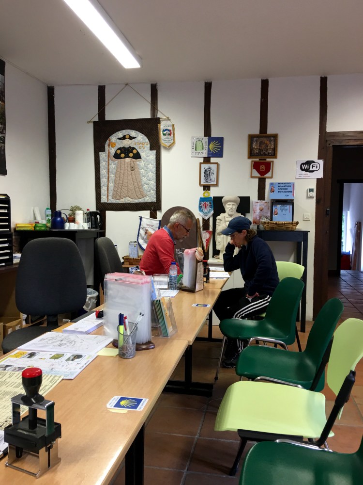 The first thing you do-take a shower and get your bed ready. There is always a restaurant nearby that will serve pilgrim meals starting at 7. After dinner folkes read, journal and chat using whatever language you can to have a conversation. Lights go out at 10 though most pilgrims are in bed way before then dreaming of the day ahead.