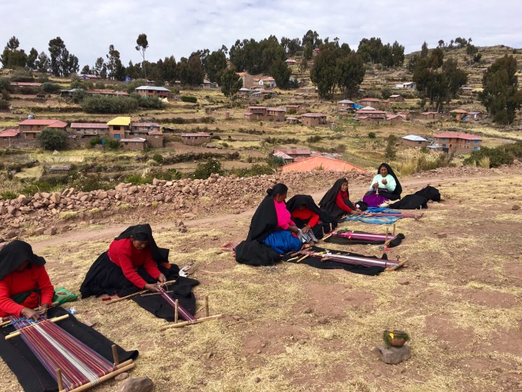 We just happened to be visiting during the time of year that they had a festival dedicated to their patron saint, the Apostle James.  It hit me that St. James was appearing again in my life – the Camino de Santiago being the first.  They had demonstrations showing their how they made  their hand-woven textiles, considered the best in Peru.  Taquile´s textile art were proclaimed by UNESCO “Masterpieces of the Oral and Intangible Heritage of Humanity”.