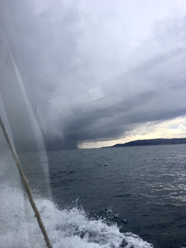 We thought we were in for a “perfect storm” kind-of trip back to Puno – but our captain simply went around it.