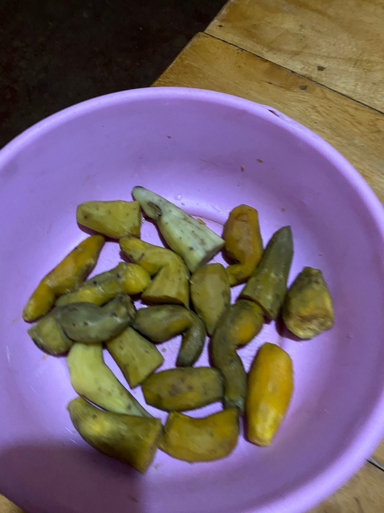 Breakfast may be a bit different then what your children eat for breakfast. Here they have chai tea and a root vegtable. They get some crakers as a snack but most of them are eating it on their way to school.