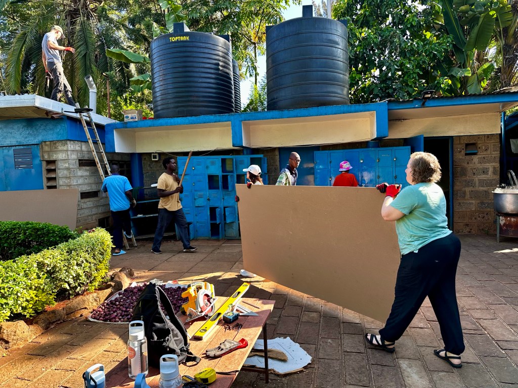 We had a parting shot of all of us in Bukura before we left for Nairobi. You see in the picture the children, Aunties and us. We were not leaving until 7pm out of Kisumu so had most of the day to finish up projects, play with the kids and say our goodbyes. Our projects were to patch and paint the dining area which Mr. Tom and I tiled years ago. The table that the young ones eat at was missing a bench on one side and broken on the other. Myson replaced the benches and reinforced the table. He also fixed the kitchen roof from leaking and secured the current roof. We all felt we left the place a little better then when we arrived.