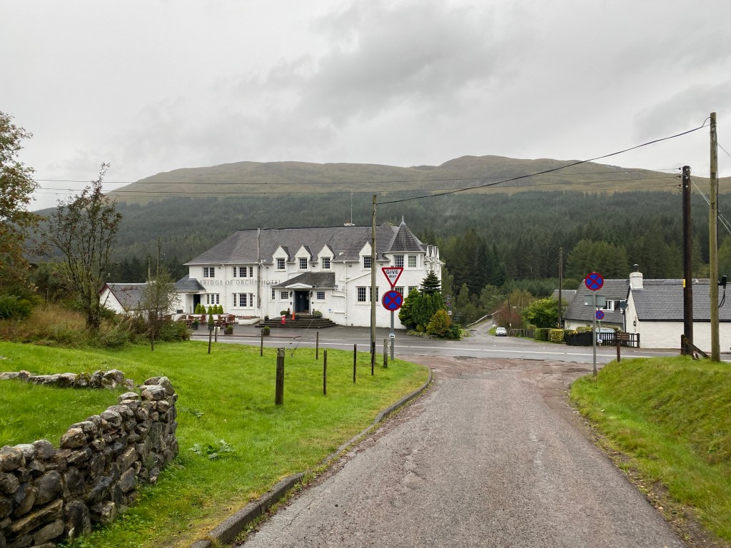 We came across a little village called Bridge or Orchy. It was the first time we saw a sign in Gaelic. It had a train stop a hotel, community center and yes, a bridge.
