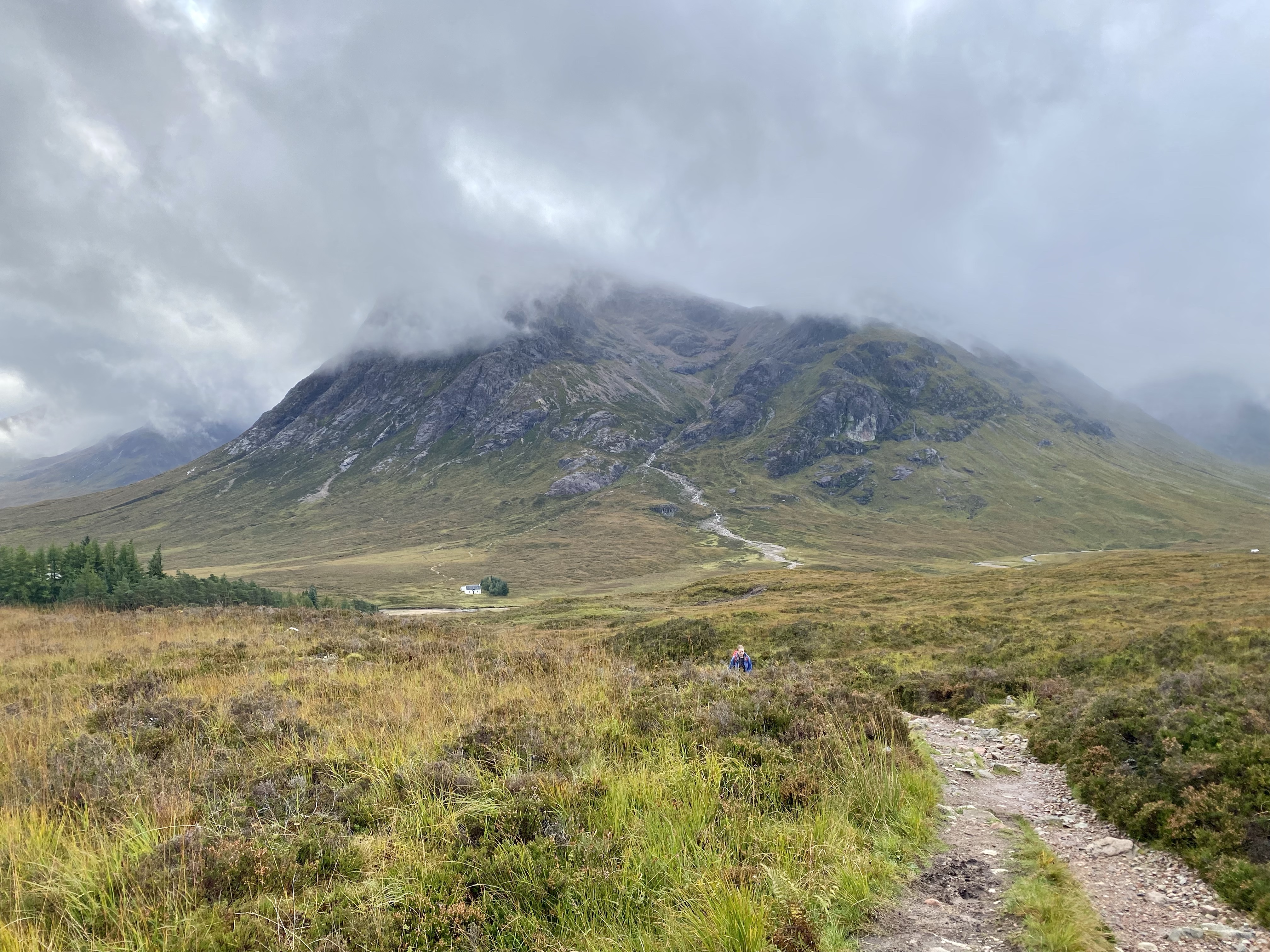 We got to the Kingshouse Hotel at the base of Buachaille Etive Mor. It was rainy like sideways rain that we could not get a good shot of the mountain. We will try in the morning.