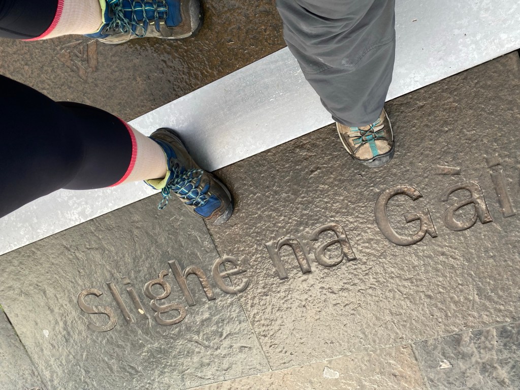 Of course, the last 2 miles it rained to remind us where we were but we pushed on until we saw the official line and a statue.