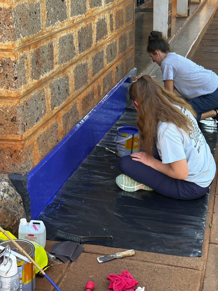 All of us are here for various reasons with one of them being to work to replace a roof and to paint needed areas of the home. Below are Hope and Aria painting the edge of the home and Melisa starting on removing the nails for the laundry tin roof. Oh and of course I helped but took a little time to blow some bubbles