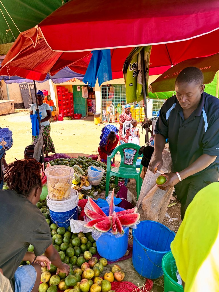 The next morning we went down to the market to get food for group. This year the group to Bukura is quite large. There are the 7 of us and we brought 4 young ladies that grew up in Rehema. We bought fresh fruits and vegetables and you will see below treats for the children.