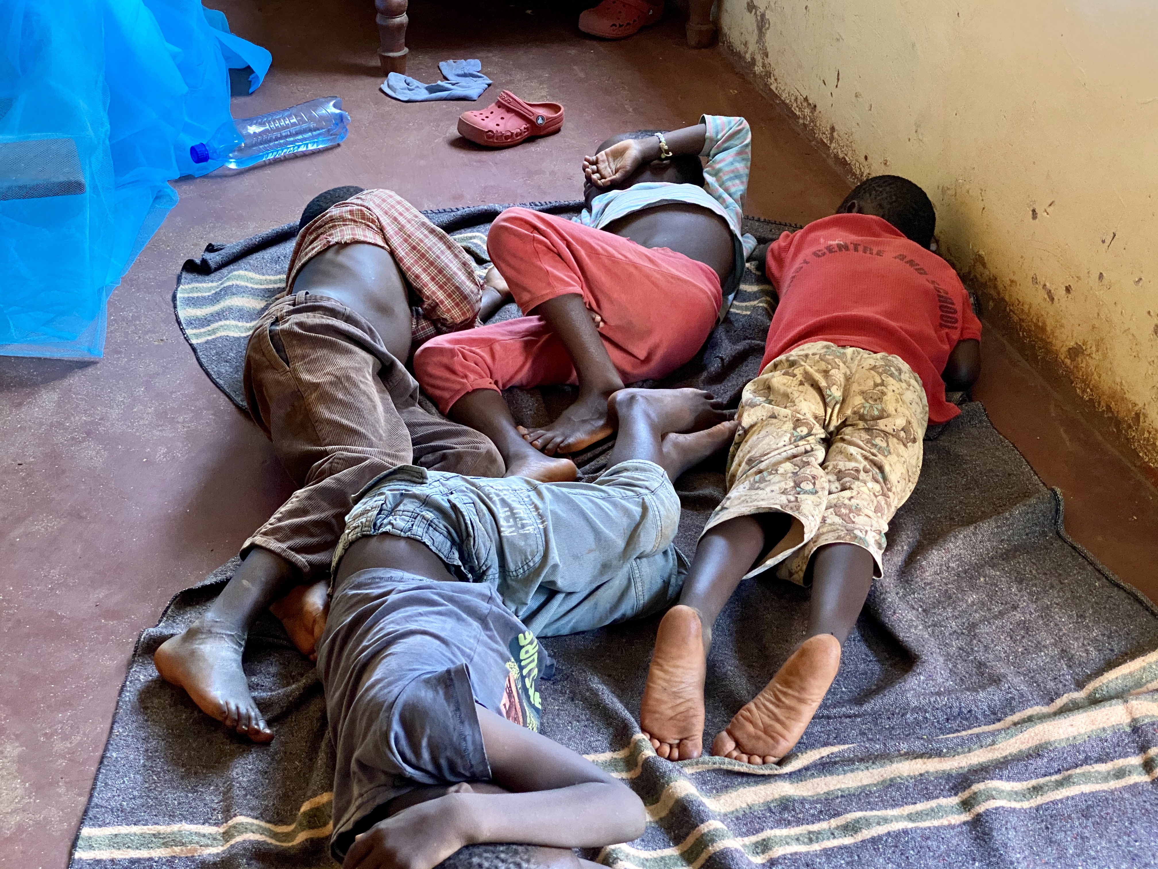 The other thing we decided to do is to treat the kids to a movie night. We bought each of them a soda and some cookies. This is all of them crammed into our room to watch Lion King on a small laptop.