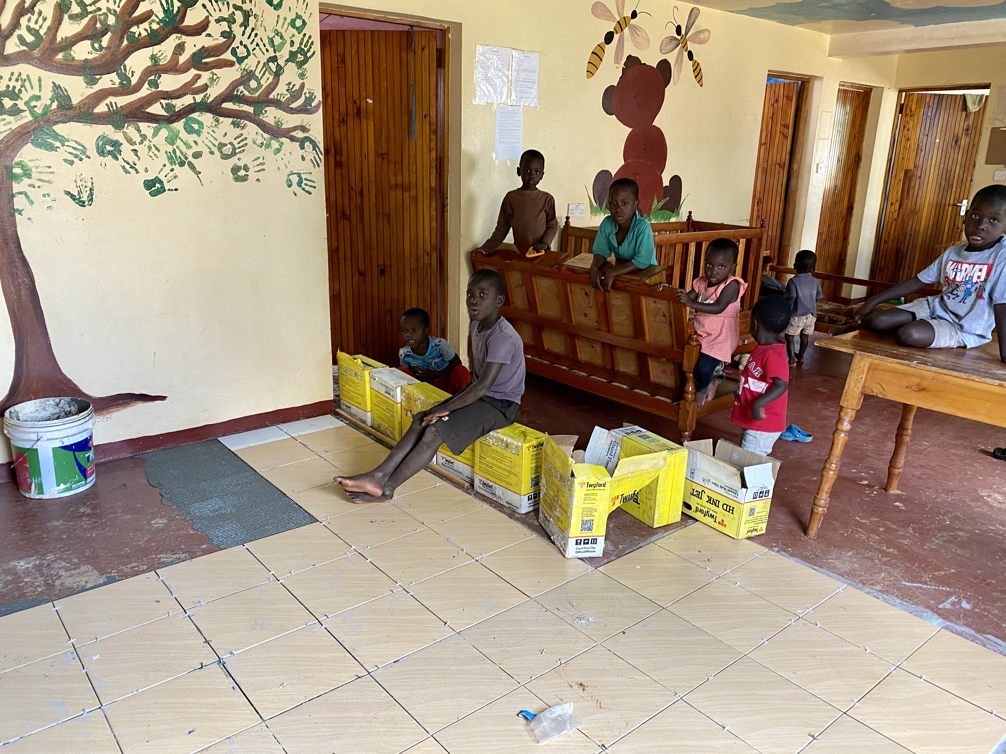 One of the sweetest times of the day is around 3pm. The babies are getting up from their naps – all 7 need to be changed and cleaned up, the toddlers march themselves to the potty and then all 10 of them are brought out to the blanket for afternoon air and sun. The younger boys are just getting back from school and join the younger ones on the blanket.